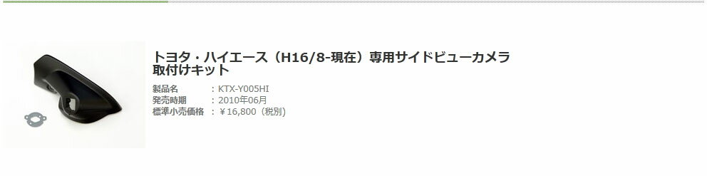KTX-Y005HI サイドビューカメラの取付には、こちらの車種専用取付けキット「パーフェクトフィット」が必要になります。